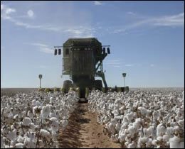 John Deere model 7460 brush-roll cotton stripper harvester (about 2010).