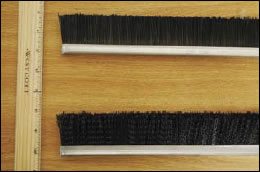 Image of brush-bat (uncrimped nylon bristle brush, top) and conventional brush (bottom).