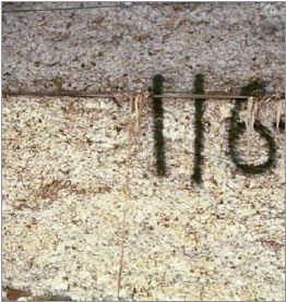 Prolonged exposure to UV rays causes a significant breakdown of the protective coating on module covers. This exposure increases with time (the number of days on a module in storage), and solar radiation intensity (more severe in the summer and early fall months). Significant UV exposure causes the coating to weaken and allows pinholes to form. Since this breakdown does not cause large defects, such as rips or large holes, covers are often kept in service well past the time when the coating is able to resist moisture penetration. Figure 21 shows coating particles that have broken from the cover and fallen onto the seed cotton. These coating flakes are a potential form of contamination of the cotton. Covers should be thrown away well before a situation like this occurs.