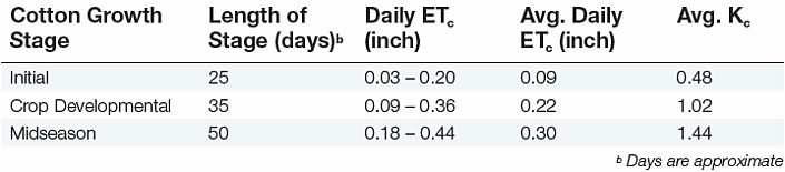 - At mid-season, cotton water demands are the highest – about 0.28 inch per day.