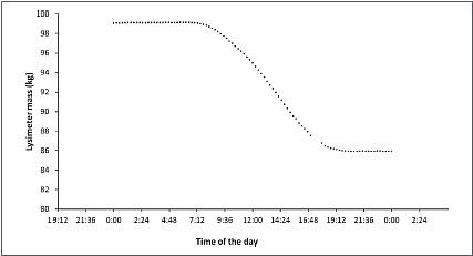 Figure 4.3 – A typical 24-hour changes in the mass of a weighing lysimeter planted with cotton in Northeast Louisiana.