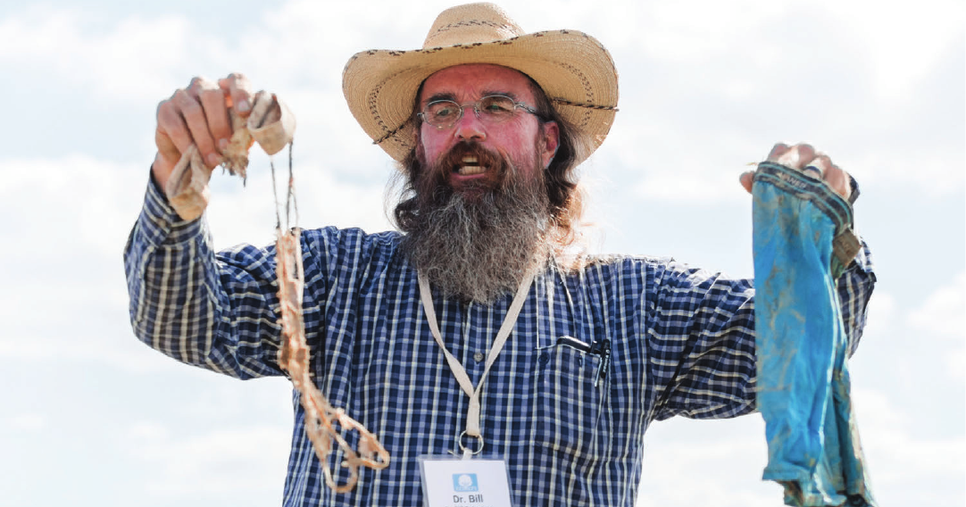 as the ability of cotton to biodegrade compared to synthetics (right of image) after a five